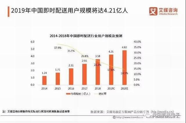 iiMedia Research(艾媒咨詢(xún))數(shù)據(jù)顯示,2019中國(guó)即時(shí)配送行業(yè)用戶(hù)規(guī)模將達(dá)4.21億人。艾媒咨詢(xún)分析師認(rèn)為,用戶(hù)消費(fèi)升級(jí),消費(fèi)者對(duì)消費(fèi)體驗(yàn)期望值增加,即時(shí)配送由于快捷、便利的優(yōu)勢(shì)受到消費(fèi)者追捧,新零售的發(fā)展帶動(dòng)即時(shí)配送行業(yè)需求提升,智慧物流技術(shù)的成熟助力即時(shí)配送行業(yè)發(fā)展,未來(lái)即時(shí)配送行業(yè)用戶(hù)規(guī)模仍有增長(zhǎng)潛力。